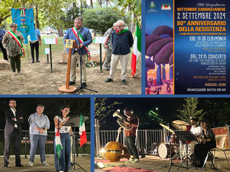 Il 2 settembre è stata celebrata e festeggiata la Liberazione di San Giuliano Terme con la commerazione al Parco del Partigiano di Asciano e il concerto con lettture della sera al Parterre di San Giuliano Terme.