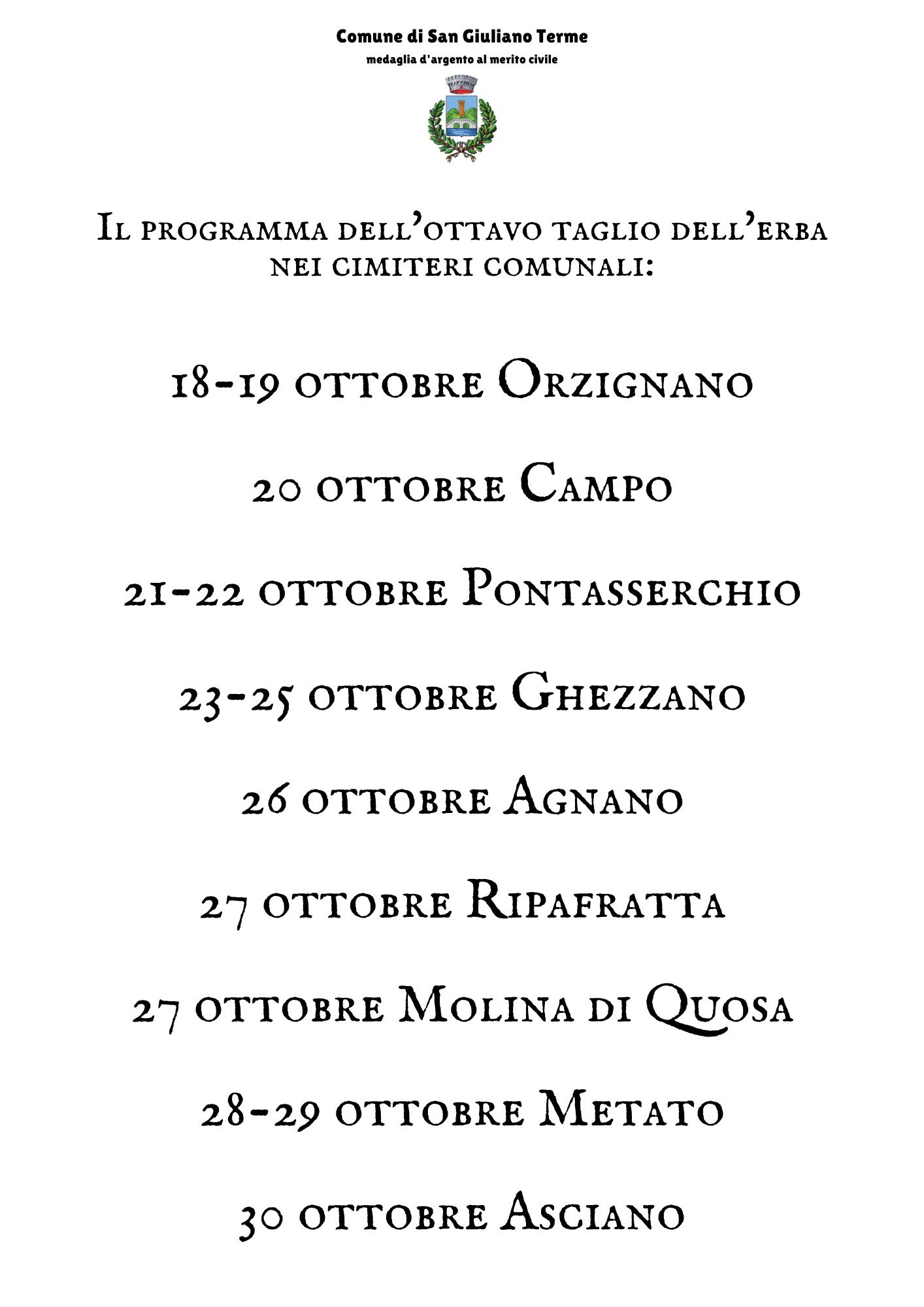 Cimiteri, il calendario dell'ottavo taglio dell'erba