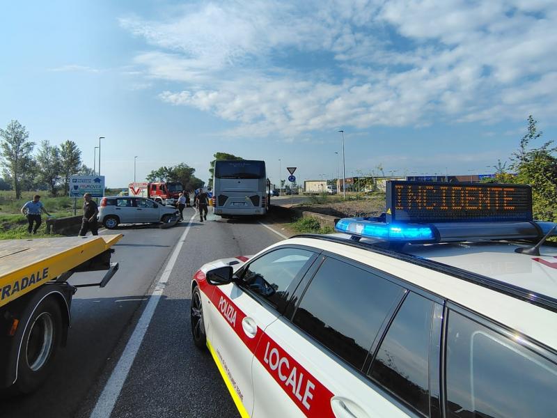 Scontro tra auto e bus turistico nei pressi della rotatoria "Morvillo". Una persona estratta in codice rosso
