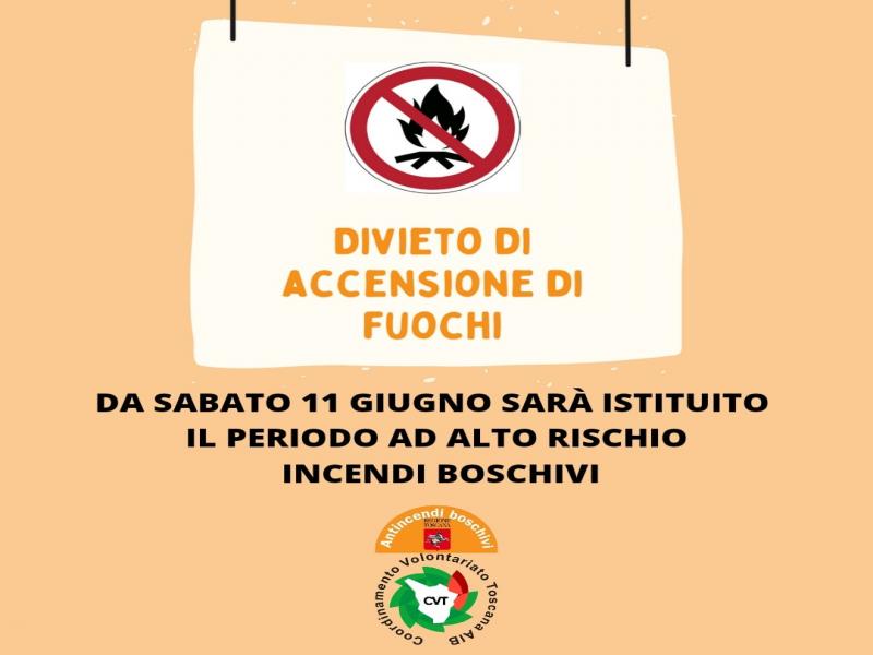 La Regione Toscana ha istituito il periodo ad alto rischio incendi boschivi a partire da sabato 11 giugno con conseguente divieto assoluto di abbruciamento dei residui vegetali su tutto il territorio regionale.