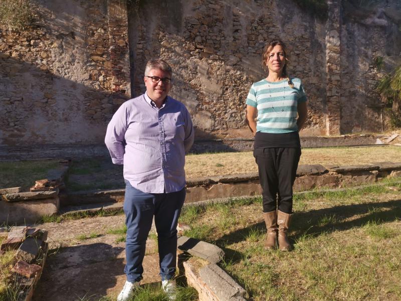 In foto l'assessore Cecchelli e la vicesindaca Scatena nel giardino della biblioteca.