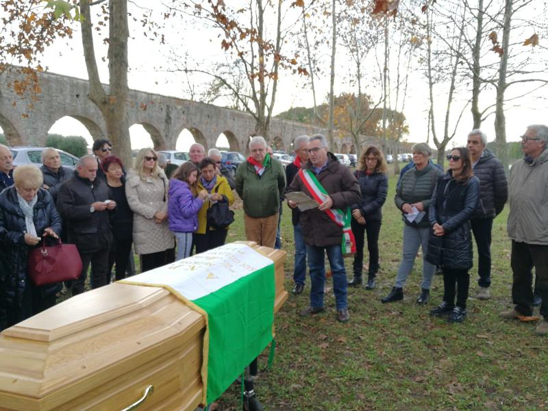 L'intervento del sindaco di San Giuliano Terme, Sergio Di Maio, in occasione del funerale di Duilio Cordoni, partigiano della brigata "Nevilio Casarosa", al Parco del Partigiano "Uliano Martini" sulla via dei Condotti di Asciano.