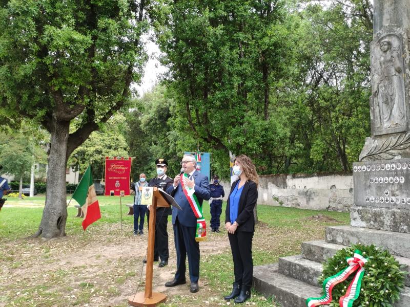 Ringrazio anzitutto coloro che hanno reso possibile questo evento, che nonostante tutto abbiamo deciso di organizzare: Anpi, Azione Cattolica, Molina mon amour, che ha in gestione questo giardino e si occupa della sua cura, la Filarmonica Sangiulianese, che spero il prossimo anno di poter vedere e ascoltare al completo; le forze dell'ordine, i Carabinieri di Pisa, San Giuliano Terme e Pontasserchio; la nostra Polizia Municipale, presente qui con il gonfalone; la Giunta e i consiglieri presenti.