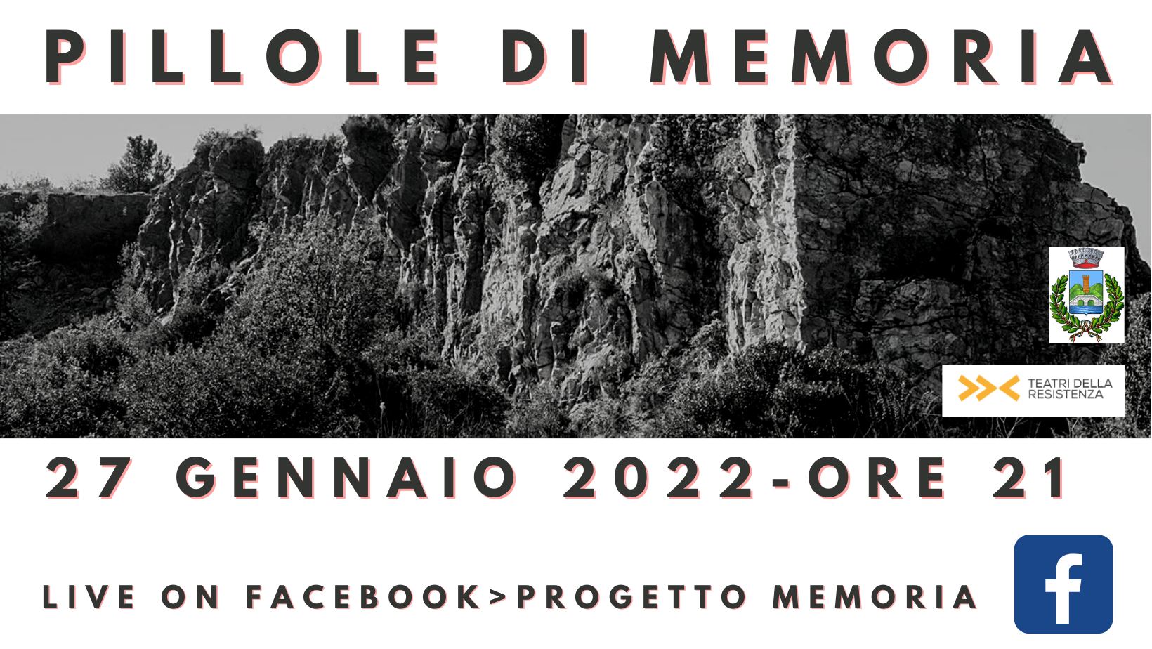 Giovedì 27 gennaio alle 21, sulla pagina Facebook del Progetto Memoria, verranno presentate le Pillole di Memoria. "Il risultato più importante che abbiamo messo a punto nel 2021 - commenta Dario Focardi, presidente dei Teatri della Resistenza, associazione a cui è affidato il Progetto Memoria -. Le pillole sono state pensate come supporto didattico per le scuole di San Giuliano Terme nell'àmbito delle attività che il Comune porta avanti da oltre venticinque anni nel campo della memoria legata agli eventi accaduti durante la Seconda guerra mondiale sul territorio, con particolare attenzione all'eccidio della Romagna".