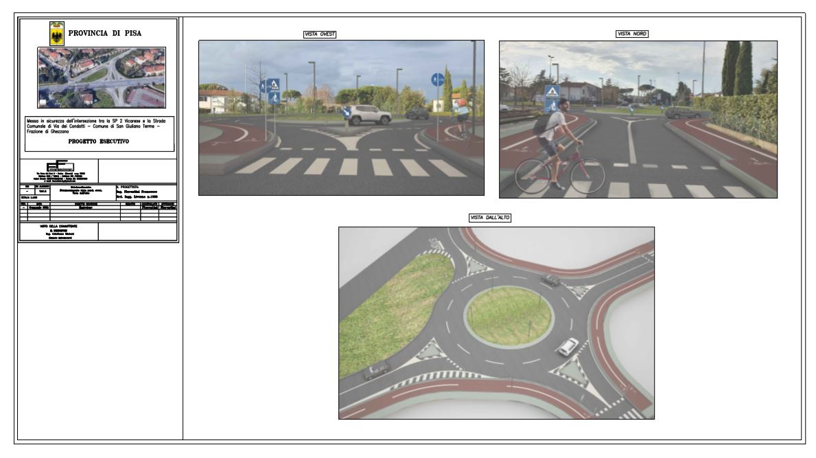 "Il Ministero, lo scorso anno, aveva trasferito 619 mila euro alla Provincia di Pisa, che erano stati poi dedicati a tre interventi sul territorio provinciale - spiega il presidente Massimiliano Angori -. Due interventi in programma riguardano la manutenzione straordinaria del ponte sulla SP45 di Lajatico e la manutenzione straordinaria del ponte sulla SP6 di Giuncheto. Il terzo intervento, del valore di 200 mila euro, riguarda proprio la rotatoria in questione. Il nulla osta della Soprintendenza ha consentito di aprire la fase di gara, che si è completata entro il mese di aprile come cronoprogramma. La scadenza per partecipare alla gara, pubblicata sull'albo pretorio dell'ente provinciale, è il 10 maggio. Il prossimo passo riguarda l'aggiudicazione dei lavori. L'iter burocratico è previsto in conclusione per il mese di giugno, mentre la realizzazione vera e propria della rotatoria per la fine dell'estate, da cronoprogramma della struttura tecnica. La fase di gara in cui stiamo per entrare sulla rotatoria tra la SP2 Vicarese e via dei Condotti rappresenta un passo molto importante per la sicurezza stradale, al quale associamo la prossima rotatoria che realizzeremo in collaborazione con il Comune di San Giuliano Terme e di cui abbiamo già presentato il progetto: la rotatoria tra la SP30 via delle Sorgenti e via dei Condotti ad Asciano".