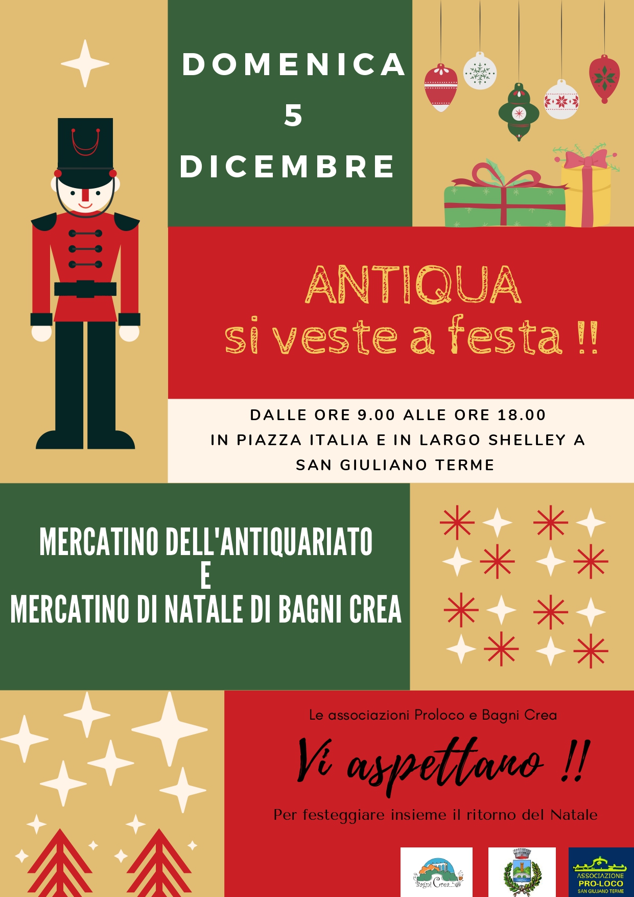 "Antiqua è una certezza - conclude il sindaco Sergio Di Maio - e l'edizione di dicembre sarà molto importante per San Giuliano Terme. Ringrazio la Pro Loco, Bagni Crea e tutti i commercianti che parteciperanno".