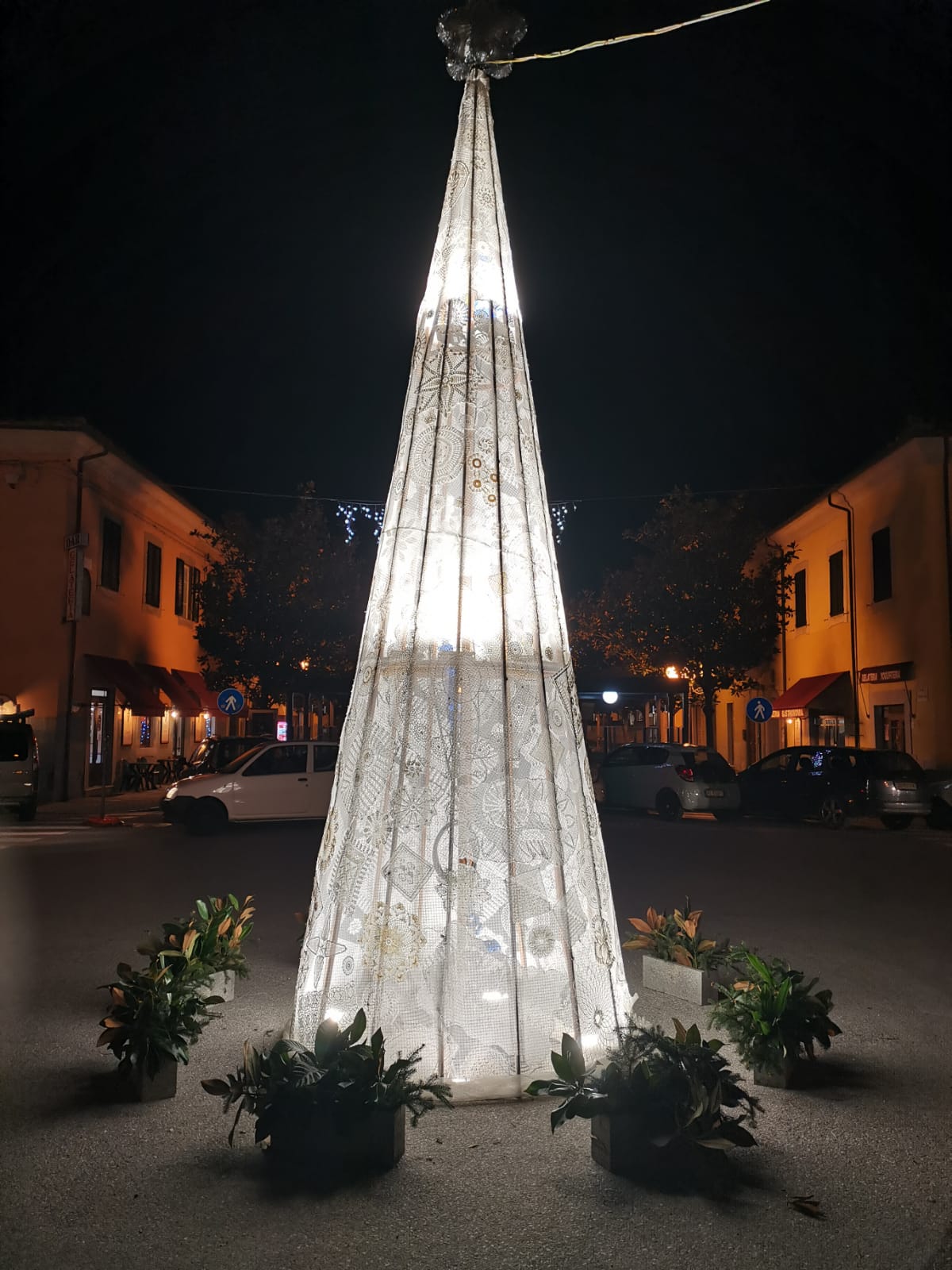 Non poteva mancare nemmeno quest'anno l'albero di Natale che l'associazione Bagni Crea realizza tradizionalmente in largo Shelley, nella frazione capoluogo di San Giuliano Terme. Il 2021 porta una conferma e una novità. Da un lato, la tecnica dell'uncinetto, che rimane. Dall'altro, i quadrati di lana colorati hanno lasciato il posto ai centrini bianchi fatti a mano provenienti direttamente dalle case dei sangiulianesi.