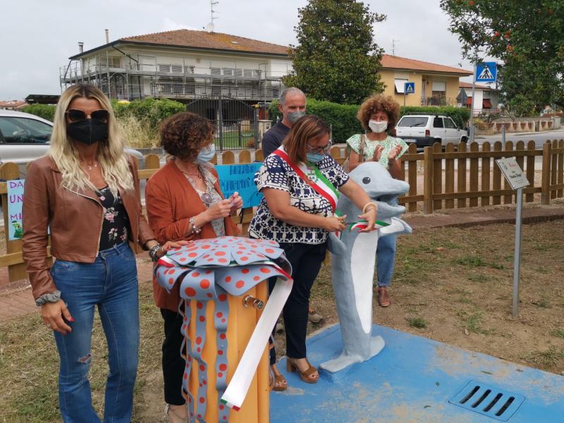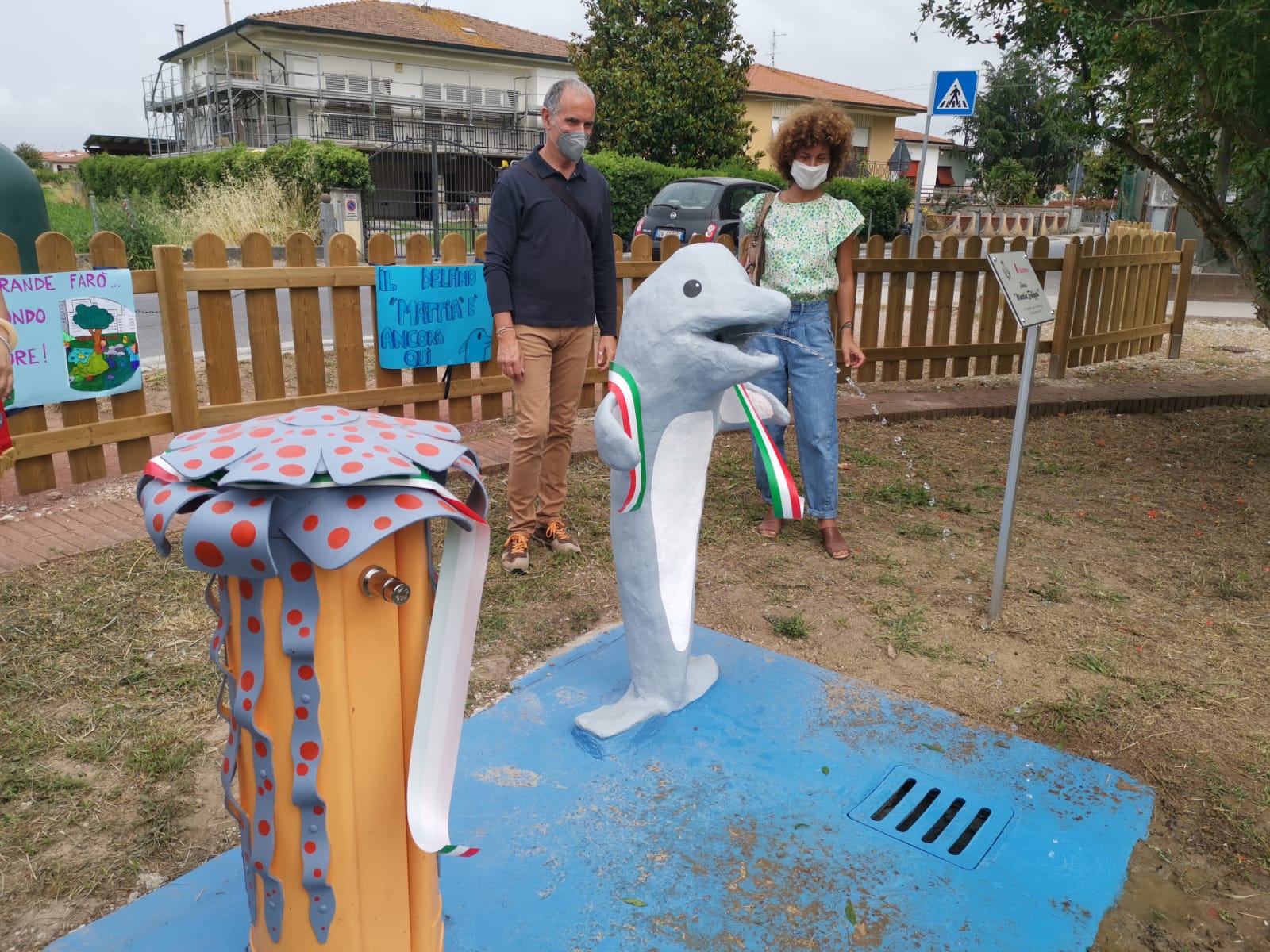 È stata inaugurata questa mattina la statua del delfino nel parco di via Turati dedicato a Mattia Filippi nella frazione di Metato.