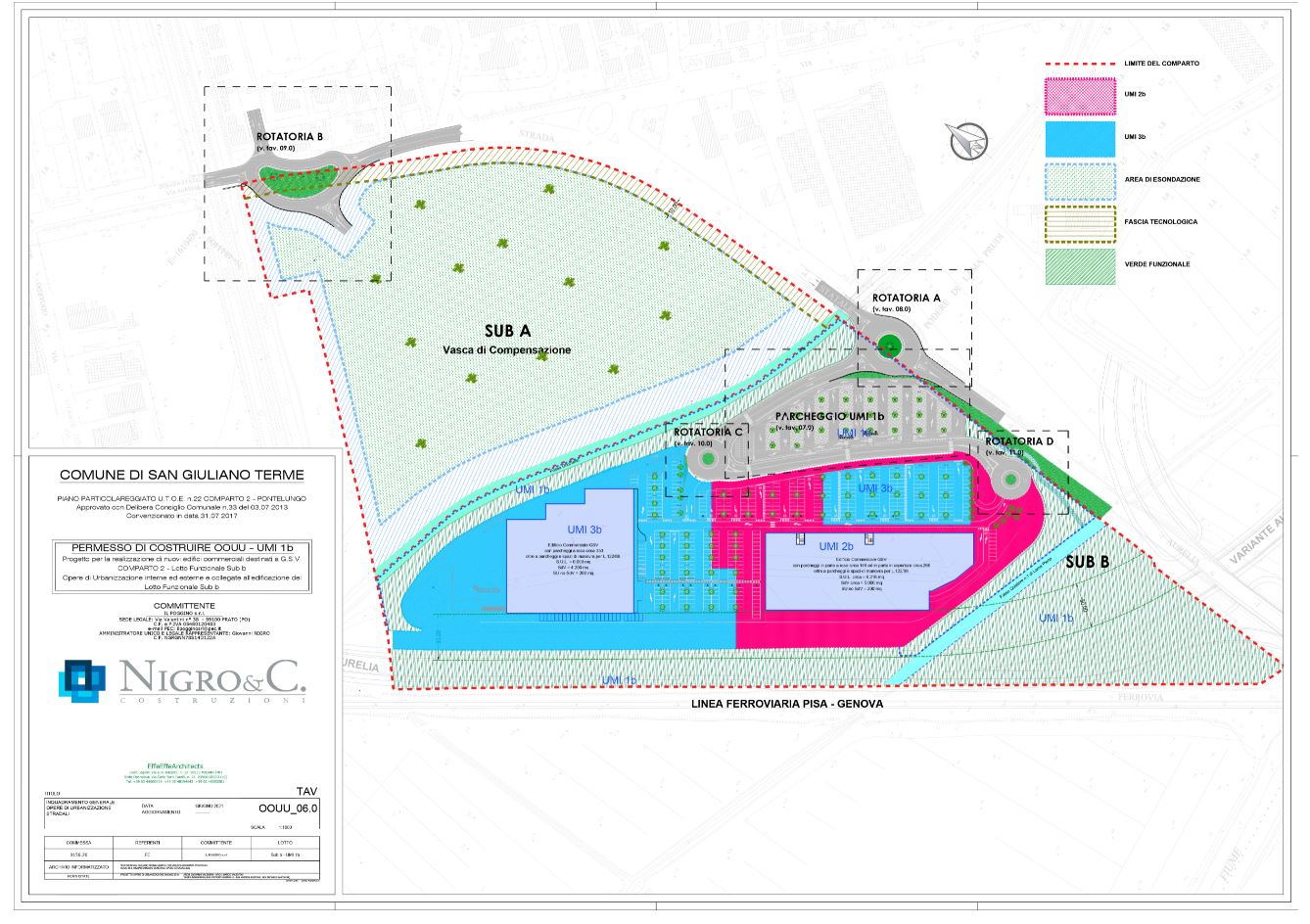 Grande attenzione verrà inoltre data alla messa in sicurezza di tutta l'area. La maxi-vasca di compensazione è stata richiesta dal Genio civile e sorgerà dove nel progetto originario era prevista la realizzazione di un complesso residenziale (che viene stralciato). L'opera, totalmente alberata, si andrà a riempire in caso di improvvise bombe d'acqua e di fatto sarà anche un nuovo giardino pubblico a disposizione della zona. Quattro i permessi a costruire che verranno rilasciati dal Comune di San Giuliano Terme: uno per le opere di urbanizzazione (rotatorie, parcheggi e verde pubblico), uno per la vasca di compensazione, uno per il comparto food, uno per il no-food.