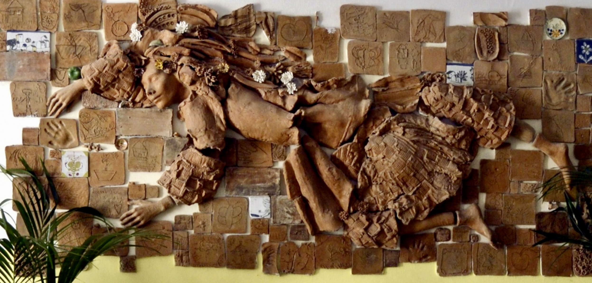 Ci sono impronte di mani, casine, fiori, cuori, bambini, barchine…. tutto quello che i bambini hanno inciso sulla creta, contribuendo con la loro sensibilità e creatività alla rappresentazione ed il ricordo di una giovane vita annientata ferocemente.