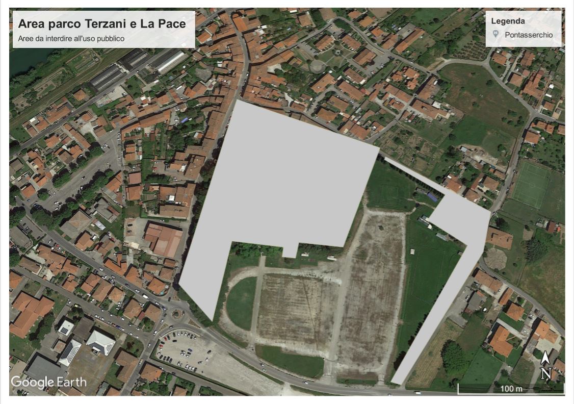 Per effettuare le verifiche necessarie in seguito al maltempo degli scorsi giorni, il Parco della Pace "Tiziano Terzani" di Pontasserchio resta interdetto al pubblico nelle aree evidenziate fino al termine delle operazioni. Lo dispone un'ordinanza del sindaco Sergio Di Maio (in allegato).