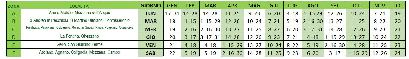 Qui invece il calendario completo della raccolta porta a porta 2022.